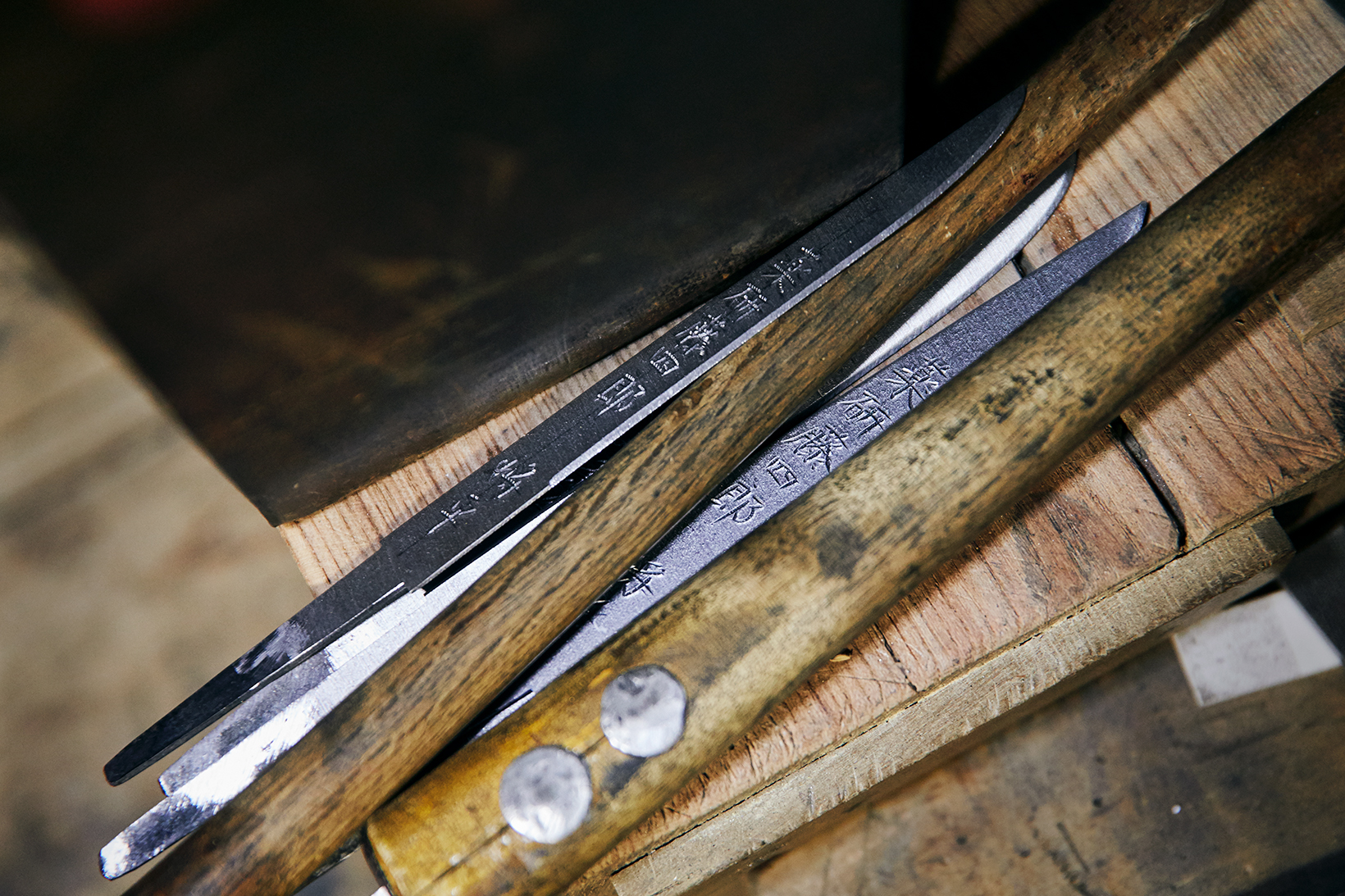 工房内には、刀の製作に使用する無数の工具が並んでいます。