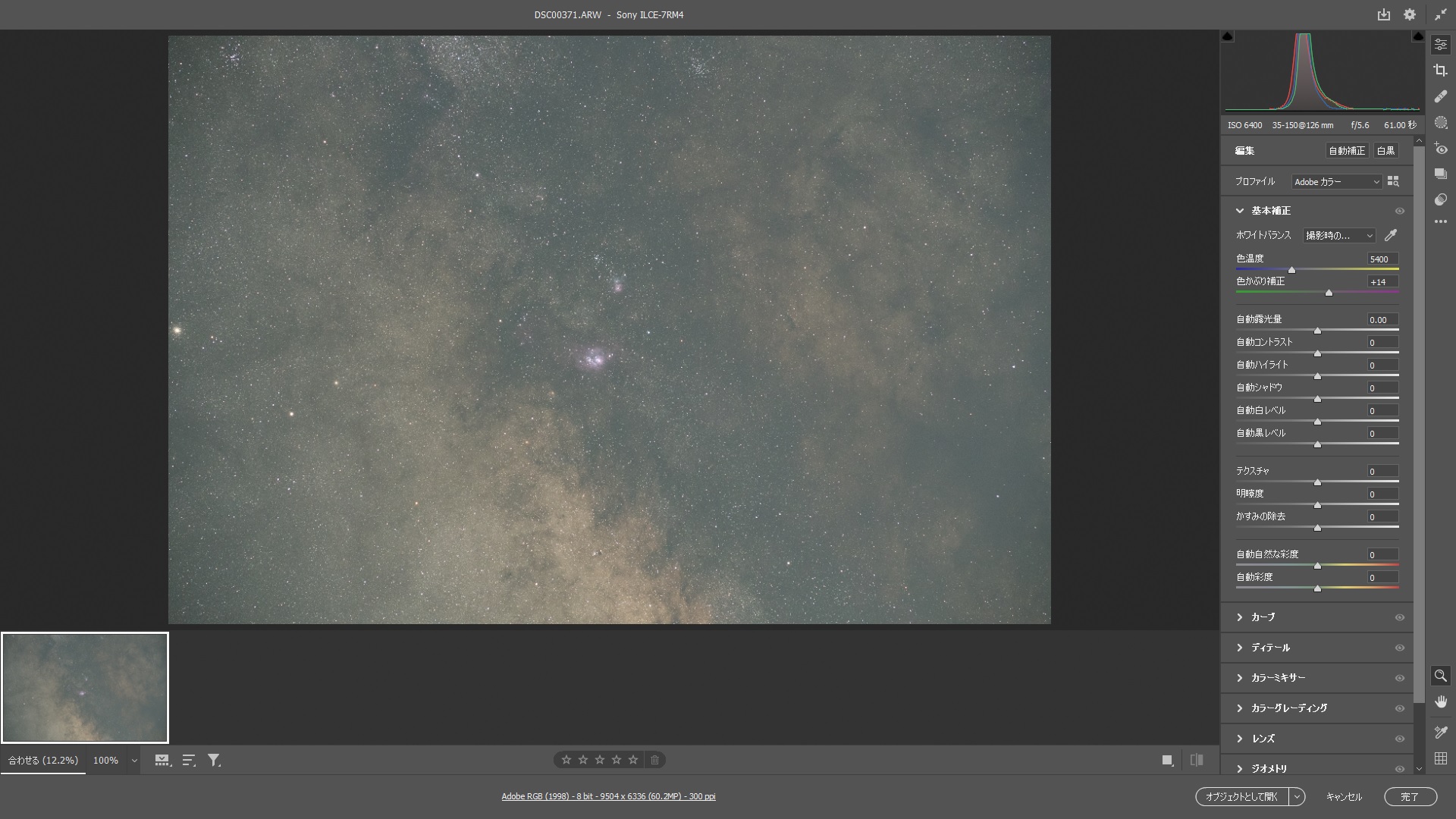 写真全体の明るさや色合いを調整します。撮影したRAWデータをPhotoshopで開きます。