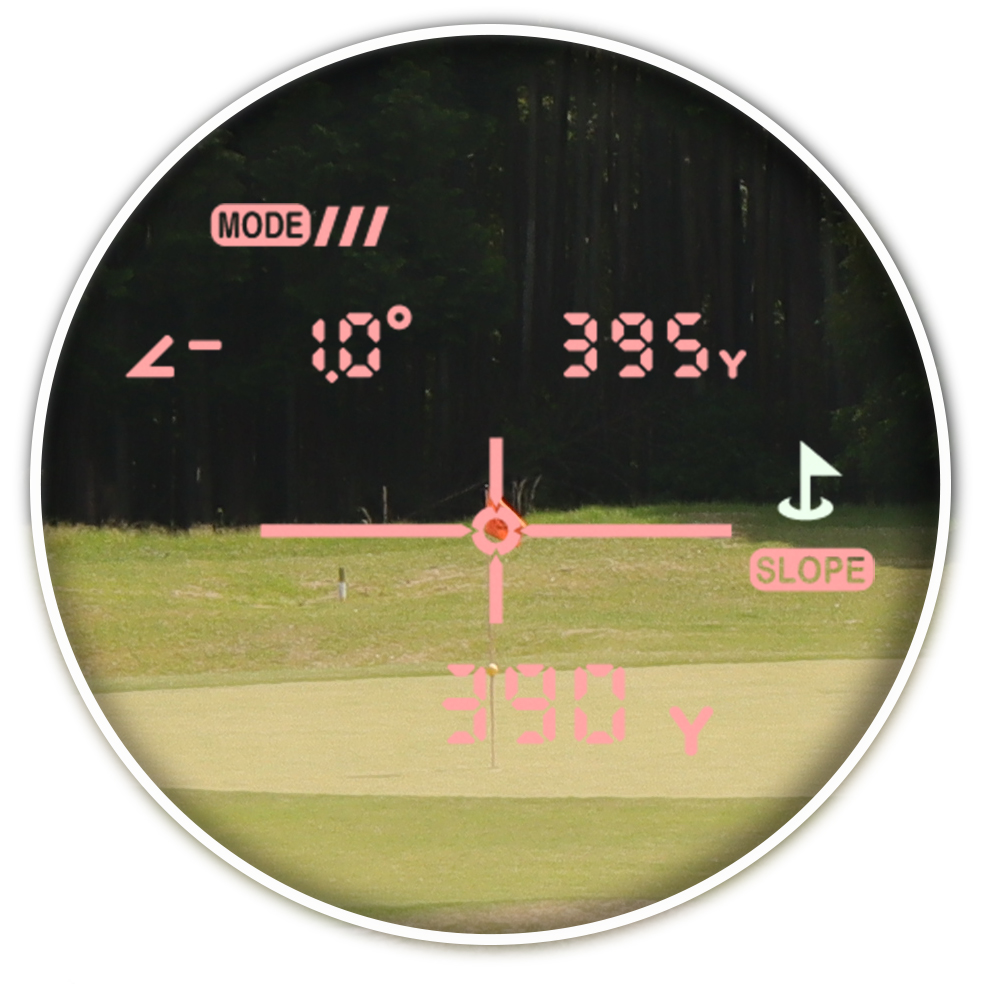 なんといってもディスプレイがとても見やすいです!モードを変えると赤と緑でピンと距離の表示を色分けしているのではっきり目標を捉えられます。