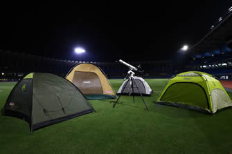 ビクセンはこのイベント企画に特別協賛し、試合前日の10日夜、等々力陸上競技場内フィールドに『Vixen presents 等々力天体観測所』を開設。参加者のみなさんと、真っ暗なスタジアムの上空に輝く土星や夏の星座を天体望遠鏡や双眼鏡を使って観測します。さらに、そのまま夜はフィールド付近にテントを張って宿泊、お風呂は選手用シャワールームを使用するという、たいへん貴重な体験をしていただけます。
