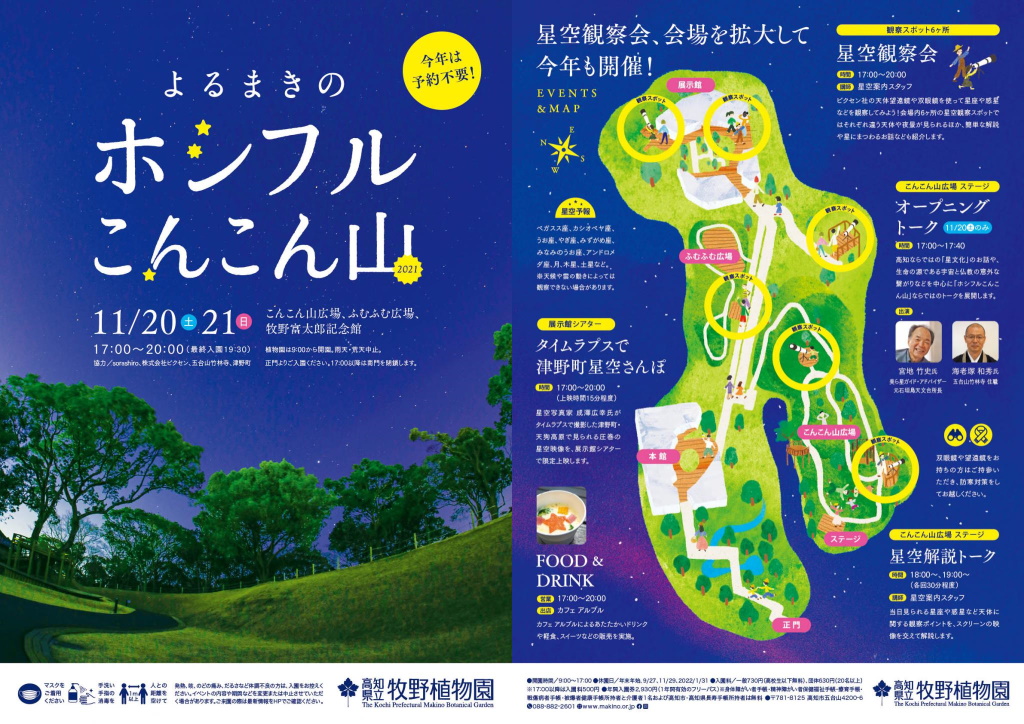 星を楽しむイベント「よるまきのホシフルこんこん山」が、今年も高知県立 牧野植物園にて2日間開催されます。