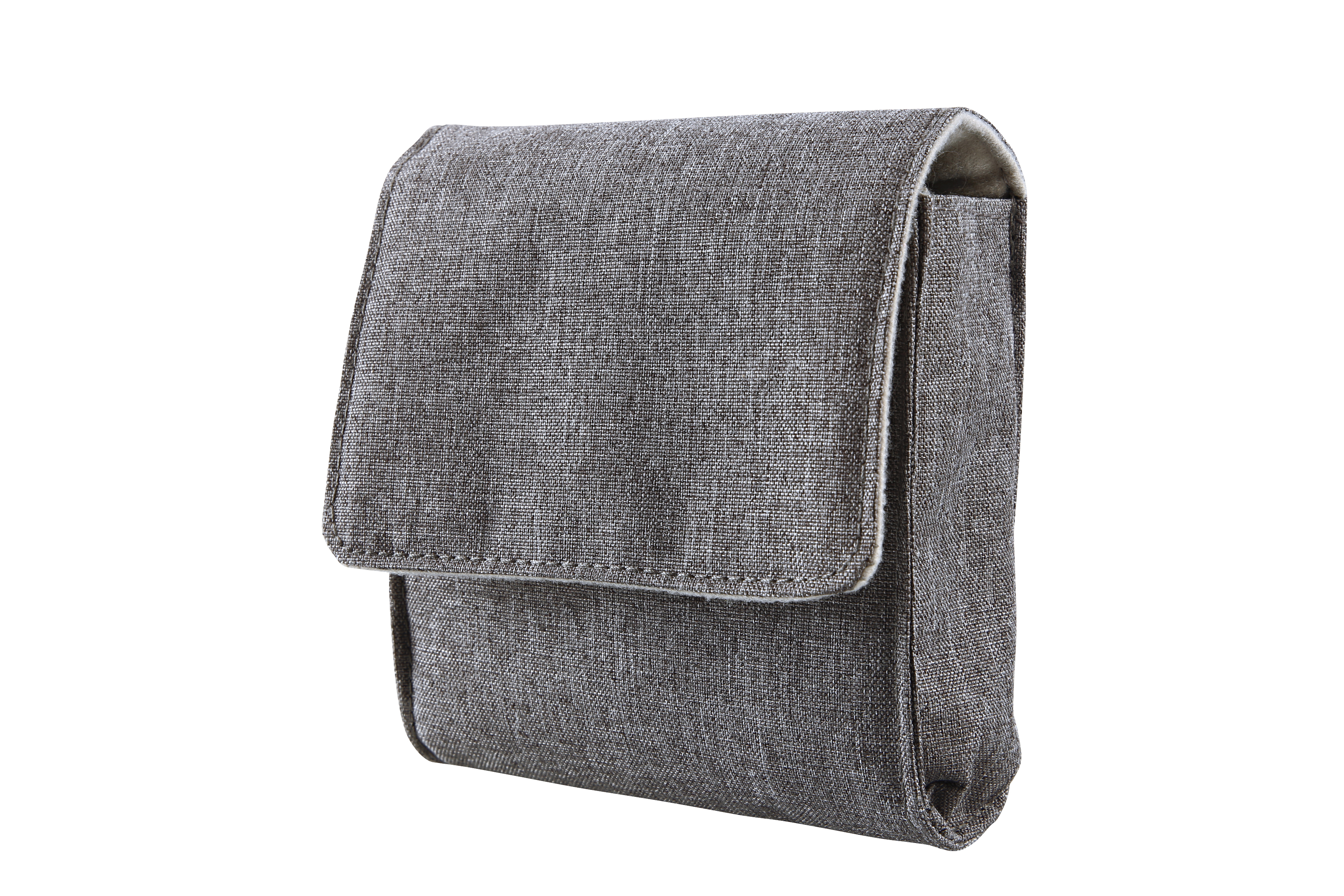 hoop本体に合わせた、シンプルな布製ケースとストラップを標準付属。ファッションとコーデしやすい落ち着きのあるグレー色でまとめています。バッグへの収納はもちろん、本体を収納したまま首から提げても違和感がありません。