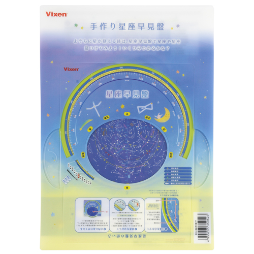 お子様にも簡単に組み立てることのできる星座早見盤です。組み立て方は簡単。切り込み線に沿って、各パーツを切り抜き、組み立てるだけ。
