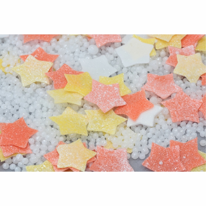 Scent of Cosmo ネビュラバス 天の川はミルキーパールのバスビーズとイエローベースのバスペタルが贅沢に使われた入浴料です。ビーズは湯にさっと溶けて、ほんのりパールがかった湯色になります。ペタルは石鹸成分でできているので、水面で漂いながらゆっくり湯にとけてゆきます。