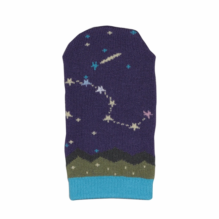 季節の星空をさりげなく柄になるようにデザインしたベビーソックスです。くるぶし丈で履かせやすく、男の子でも女の子でも性別問わずコーディネートしやすい色味とデザインです。星座や流れ星のデザインは表だけではなく、足の裏側や足首までしっかりと表現しています。星空のデザインごとに夜空の色を変化させて、可愛らしい配色にしました。